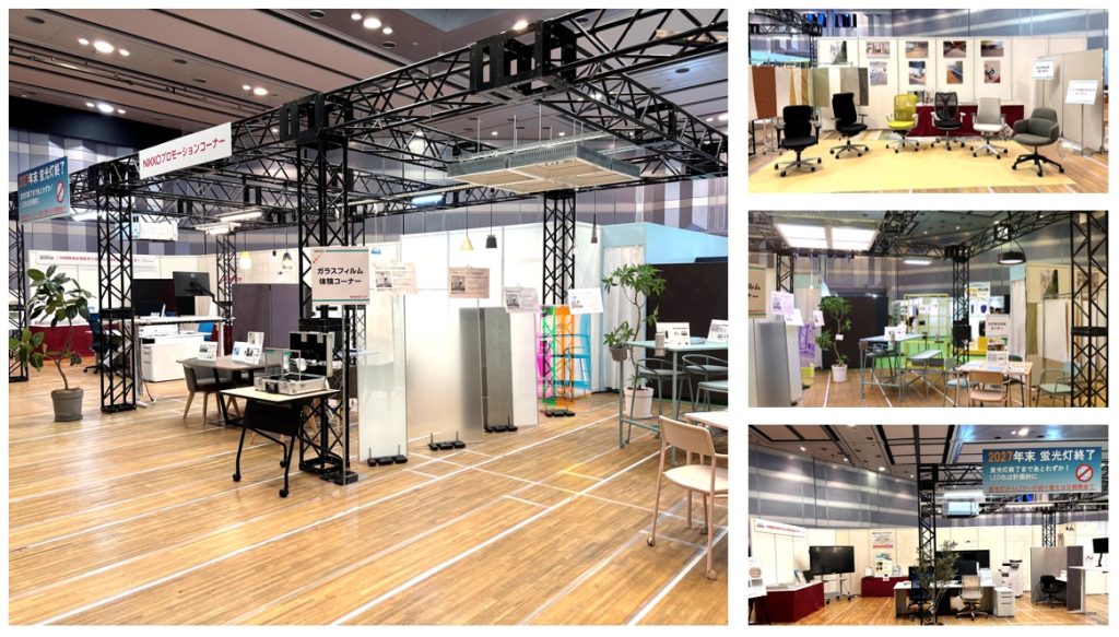 ①NIKKOプロモーションコーナー ②空間提案メーカーコーナー ③業務用プリントソリューションメーカーコーナーの3つのエリアに分かれています。