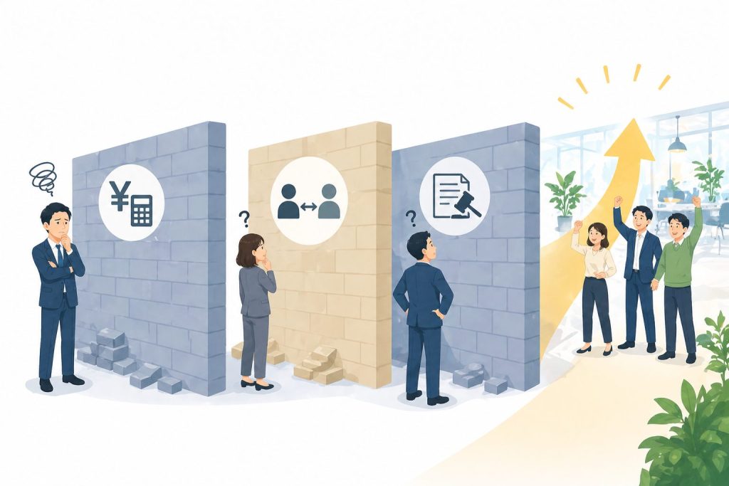 労働環境の改善を進めるにあたり、中小企業が特に直面しやすい3つの大きな壁と、その克服のヒントです。