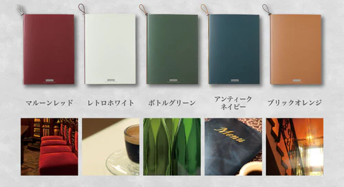 サイズはA5とA4の2種類。カラーはレトロな喫茶店をイメージした、シックで落ち着いた色合いの5色あります。