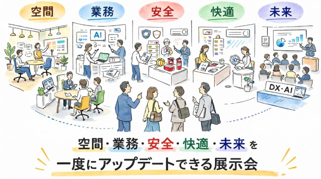 つまり「空間」「業務」「安全」「快適」「未来」を一度にアップデートできる展示会です!