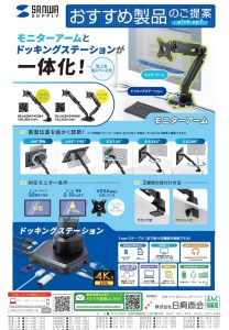 机上面を有効活用できるドッキングステーション搭載モニターアーム