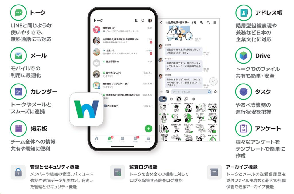 LINEの使い勝手をそのままに、仕事に必要なあらゆる機能が備わった