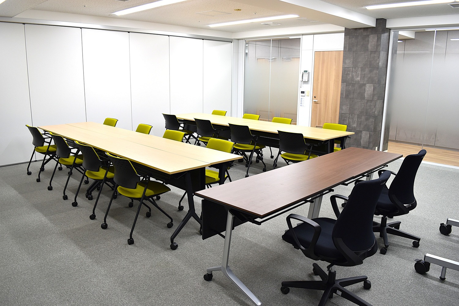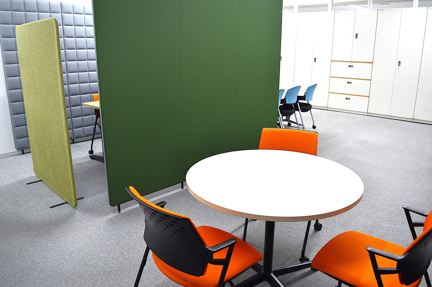 あわせて、長年使用されてきた会議室の机・椅子の入替や、防音性に配慮した打合せスペースの新設など、オフィス全体の機能性向上も図られました。