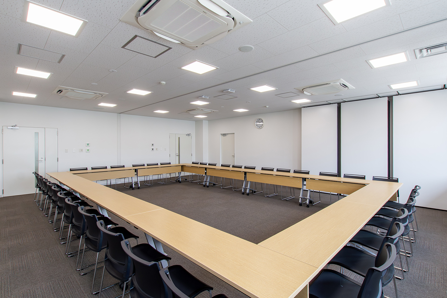議場は多目的に利用されるため、移動や折りたたみが可能な家具を選ばれました。